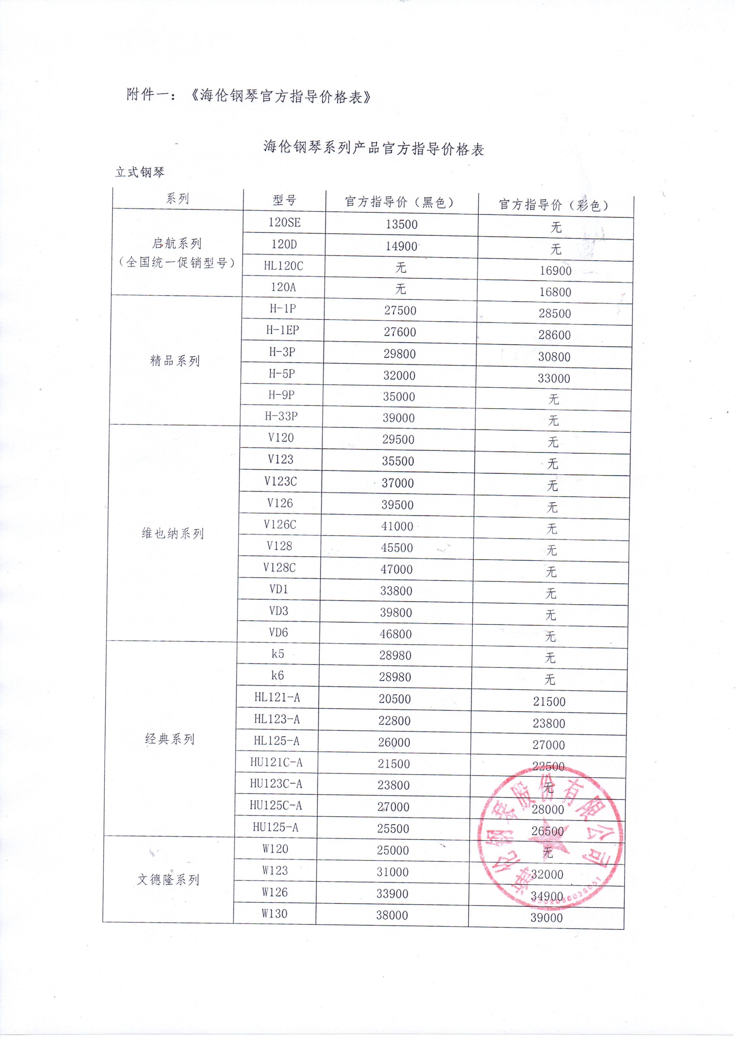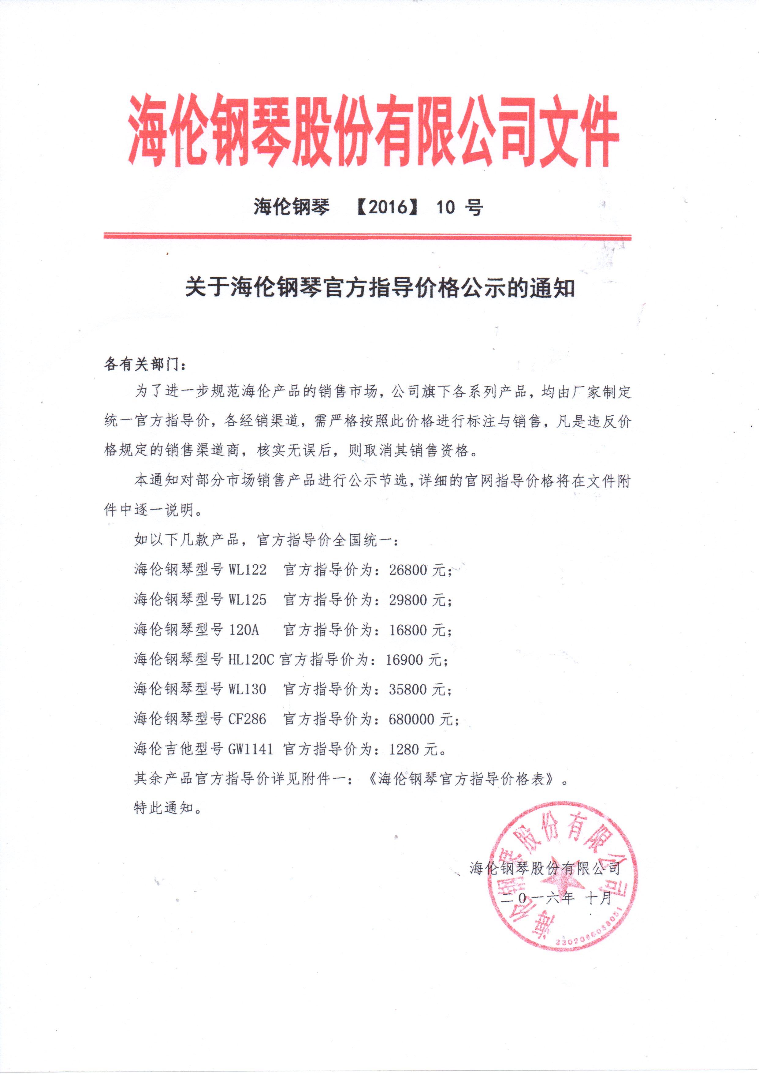 關于海倫鋼琴官方指導價格公示的通知