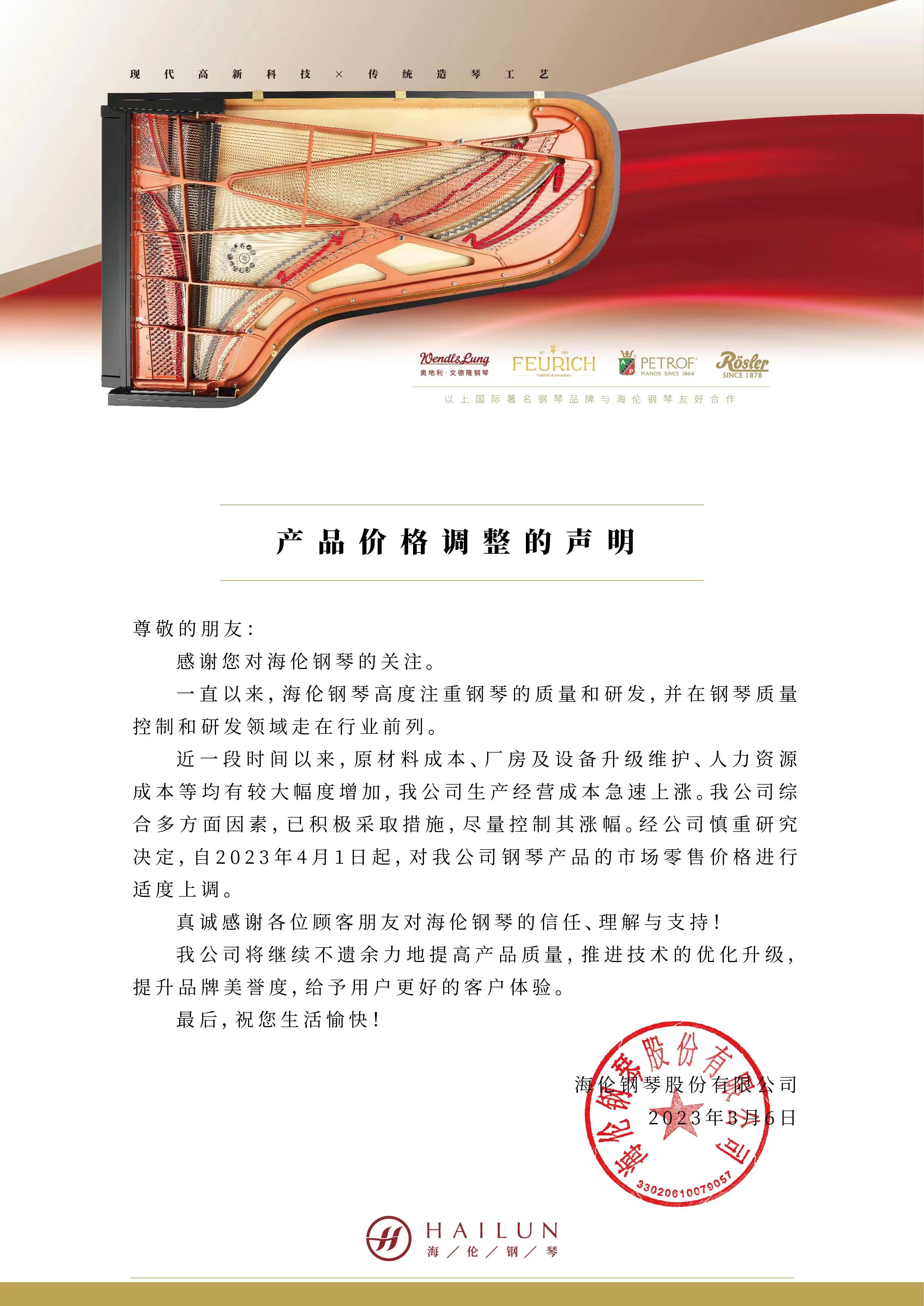 聚焦海倫丨海倫鋼琴股份有限公司產(chǎn)品價格調整聲明