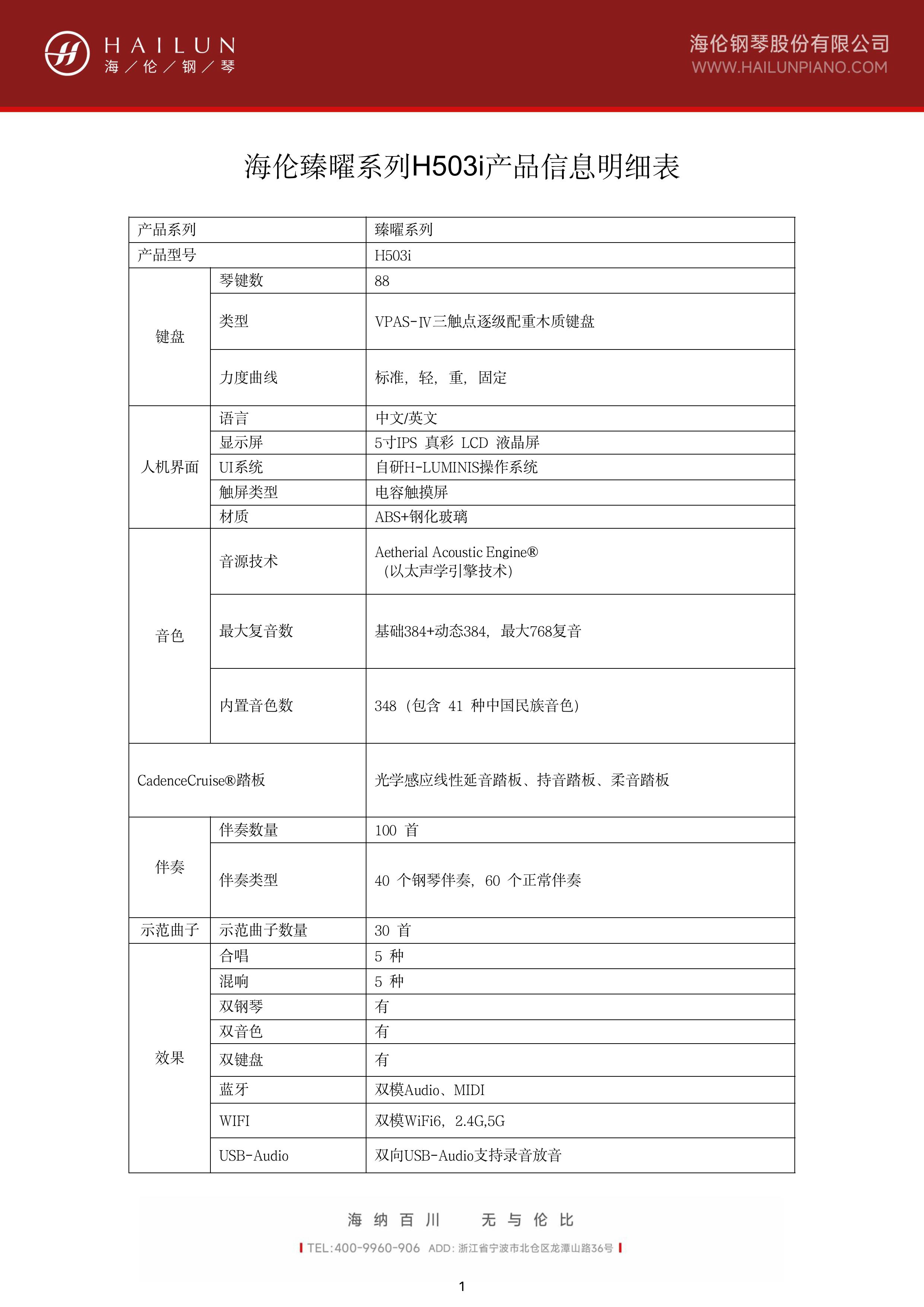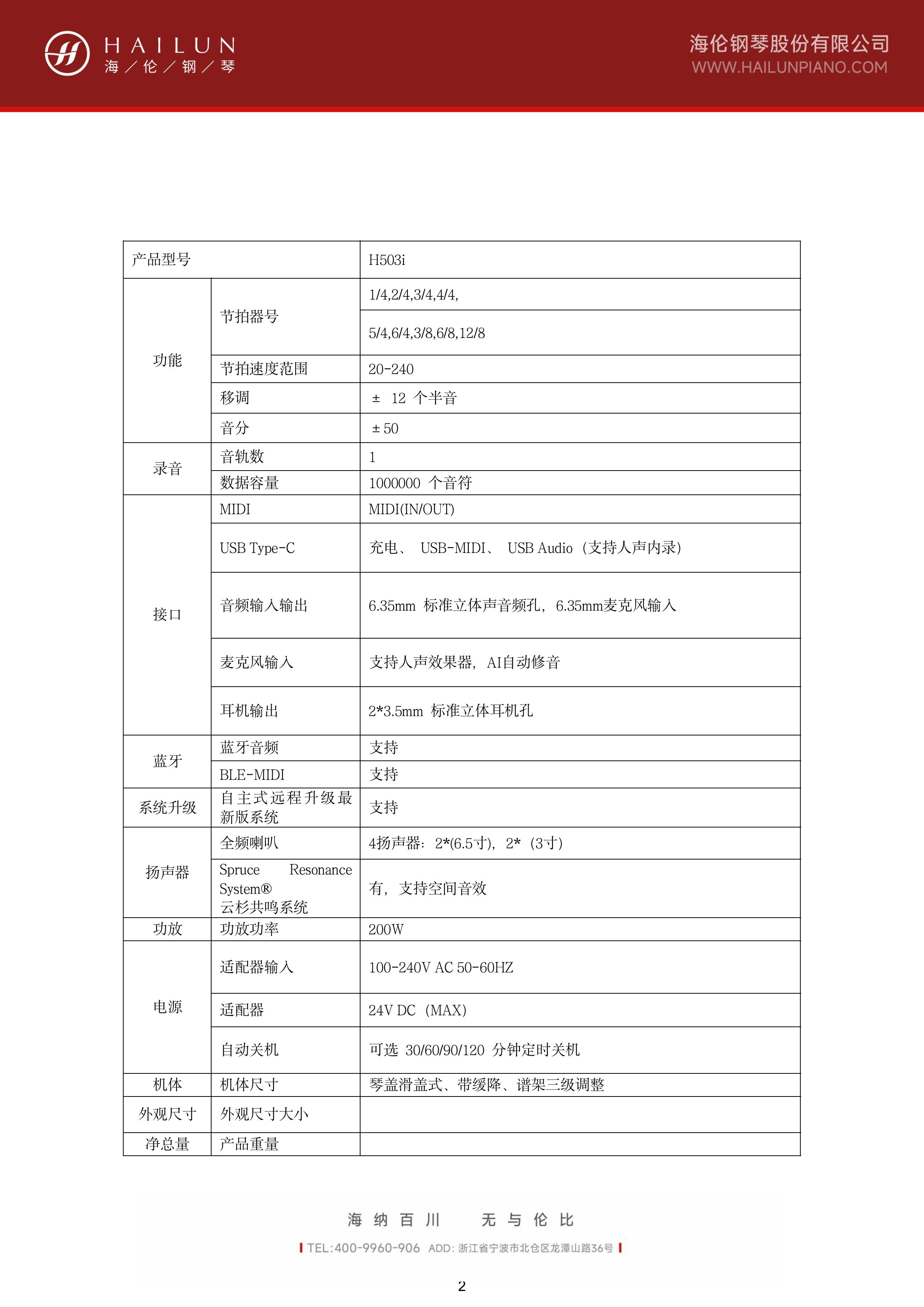 智能數碼鋼琴H-503i